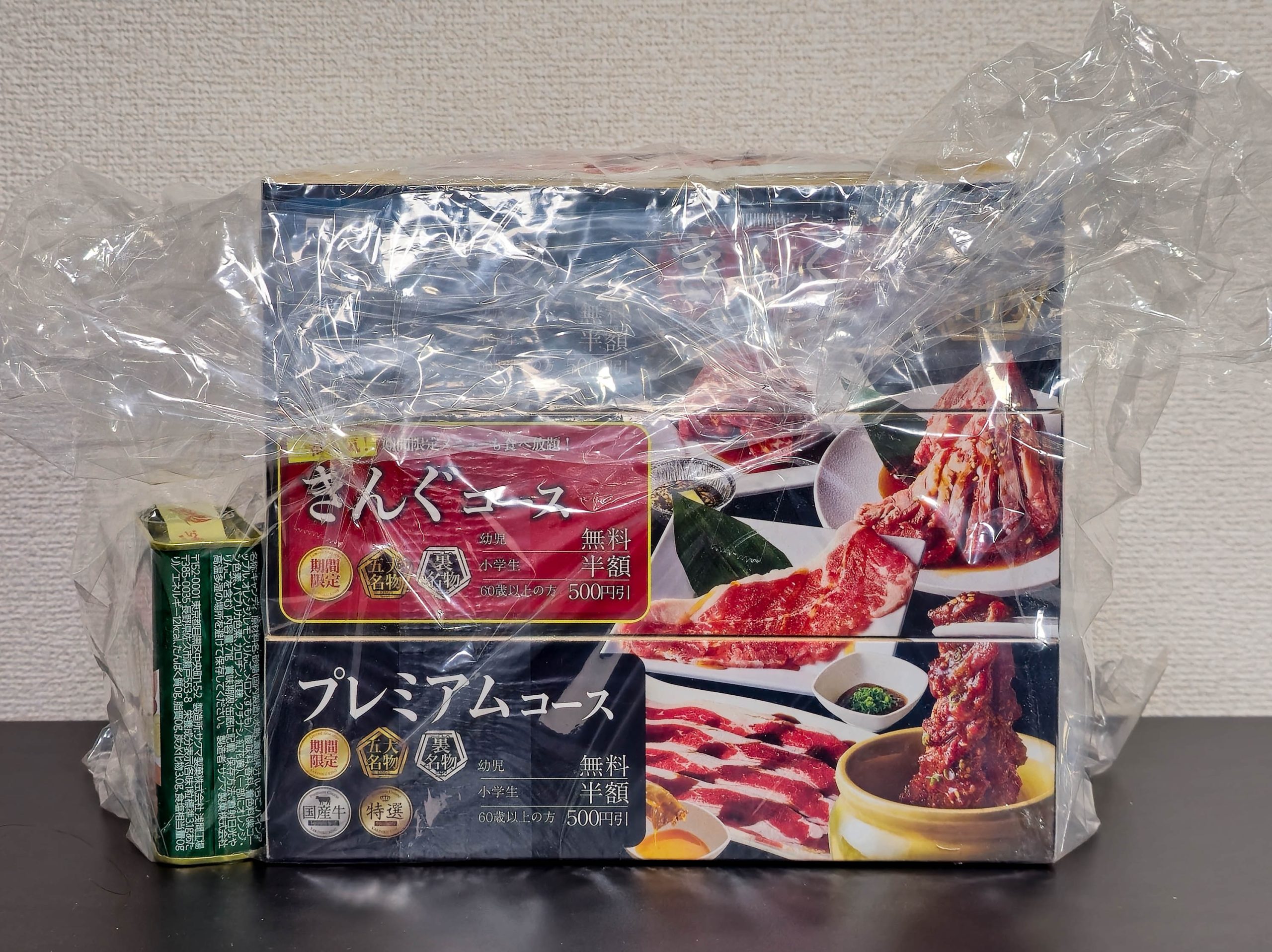 Everything came neatly packed inside a reusable Yakiniku King shopping basket, which added to the charm. Inside the basket were Sakuma Drops, a meat-patterned eco-bag, a set of three Yakiniku King-themed tissue boxes, Yakiniku King masking tape, and a generous set of coupons worth 4,000 yen ($27.64 USD), consisting of eight coupons each worth 500 yen.
